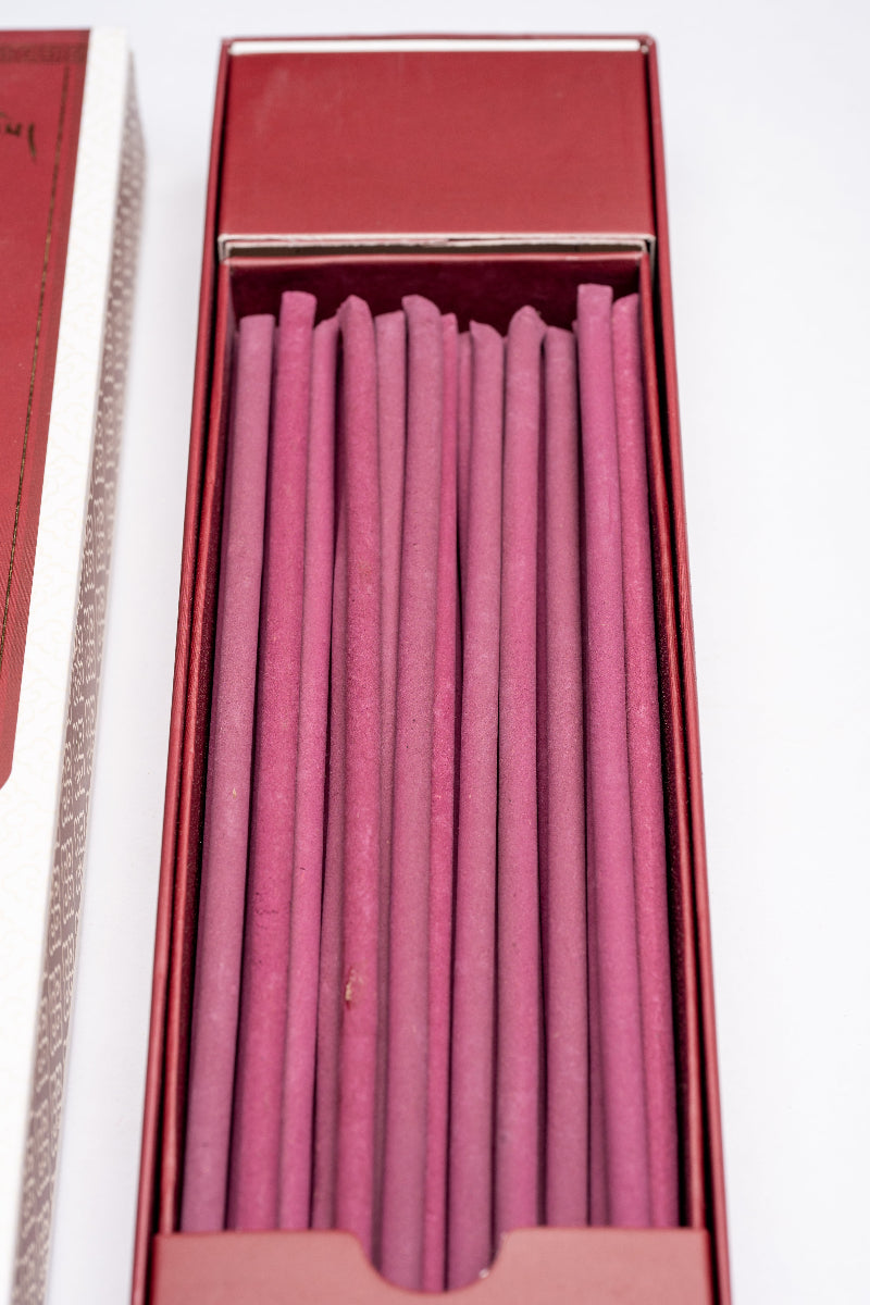 This incense was handmade from a mixture of natural and medicinal ingredients, such as saffron and red and white sandalwood. The incense was crafted authentically, following an ancient Buddhist tradition.